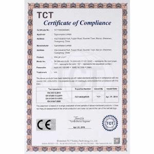 Certificato UL Certificato TUV Certificato TUV-GS Certificato FC (TCT test aparecchiature) Certificato RoHS (BST test aparecchiature) Certificato CE (BST test aparecchiature) Certificato CE (TCT test aparecchiature) Certificato PSE (WSCT test aparecchiature) Certifiato FC (WSCT test aparecchiature) Certificato Patente Tubi test aparecchiature Patente luci da pavimento Certificato Patente Faretti Certificato Patente Nastri Certificato Patente High bay Certificato Patente Panelli Certificato Patente Luci di Emergenza Certificato Patente Tri-proof Certificato Patente Faretti Certificato Patente Luci Lineari Certificato Patente Corn