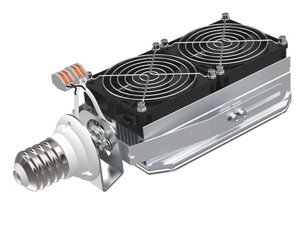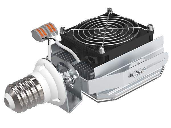 - Retrofit è in grado di lavorare in un apparecchio sigillato e il rilevatore termico potrebbe protegge il LED in caso il ventilatore non funzioni;