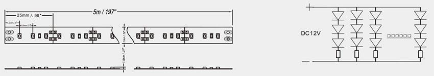 | Modello Colore | Colore | Lunghezza(m) | LED QQty | Tipo di LED | Output della luce(lumen / m) | Angolo di Fascio(gradi) | Voltaggio(V DC) | Corrente (Am ps /m) | Consumo Potenza Max. (W/m) | IP | Connessione Continua(m) |