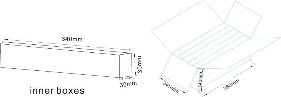 - 1 pezzo per scatola interna, 100 scatole interne per cartone.