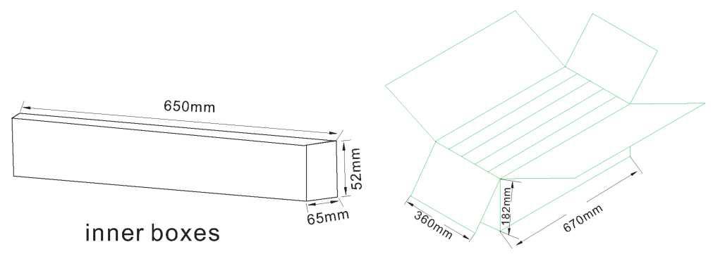 - 1 pezzo per scatola interna, 50 scatole interne per cartone.