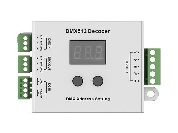 Applicabile a 12v / 24v RGB, RBBW, WW + W, W strisce o lampade, più di quattro canali di uscita. Il regolatore funziona come decodificatore DMX512