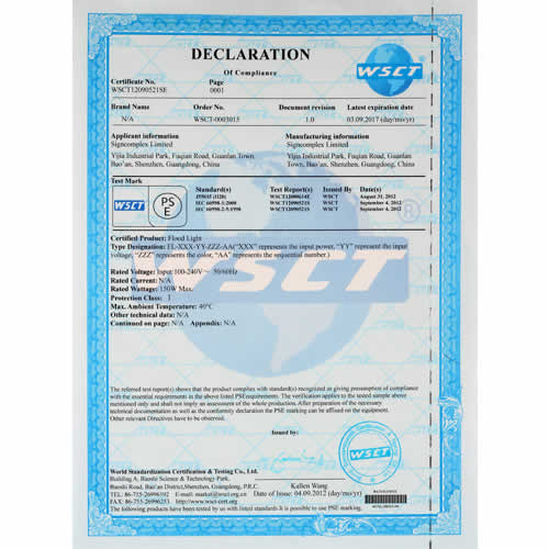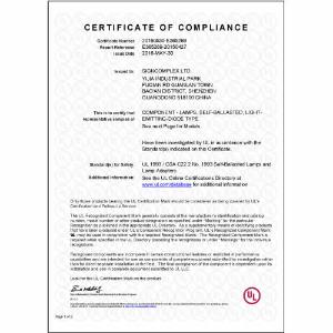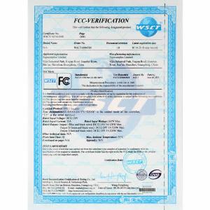 Certificato UL Certificato TUV Certificato TUV-GS Certificato FC (TCT test aparecchiature) Certificato RoHS (BST test aparecchiature) Certificato CE (BST test aparecchiature) Certificato CE (TCT test aparecchiature) Certificato PSE (WSCT test aparecchiature) Certifiato FC (WSCT test aparecchiature) Certificato Patente Tubi test aparecchiature Patente luci da pavimento Certificato Patente Faretti Certificato Patente Nastri Certificato Patente High bay Certificato Patente Panelli Certificato Patente Luci di Emergenza Certificato Patente Tri-proof Certificato Patente Faretti Certificato Patente Luci Lineari Certificato Patente Corn